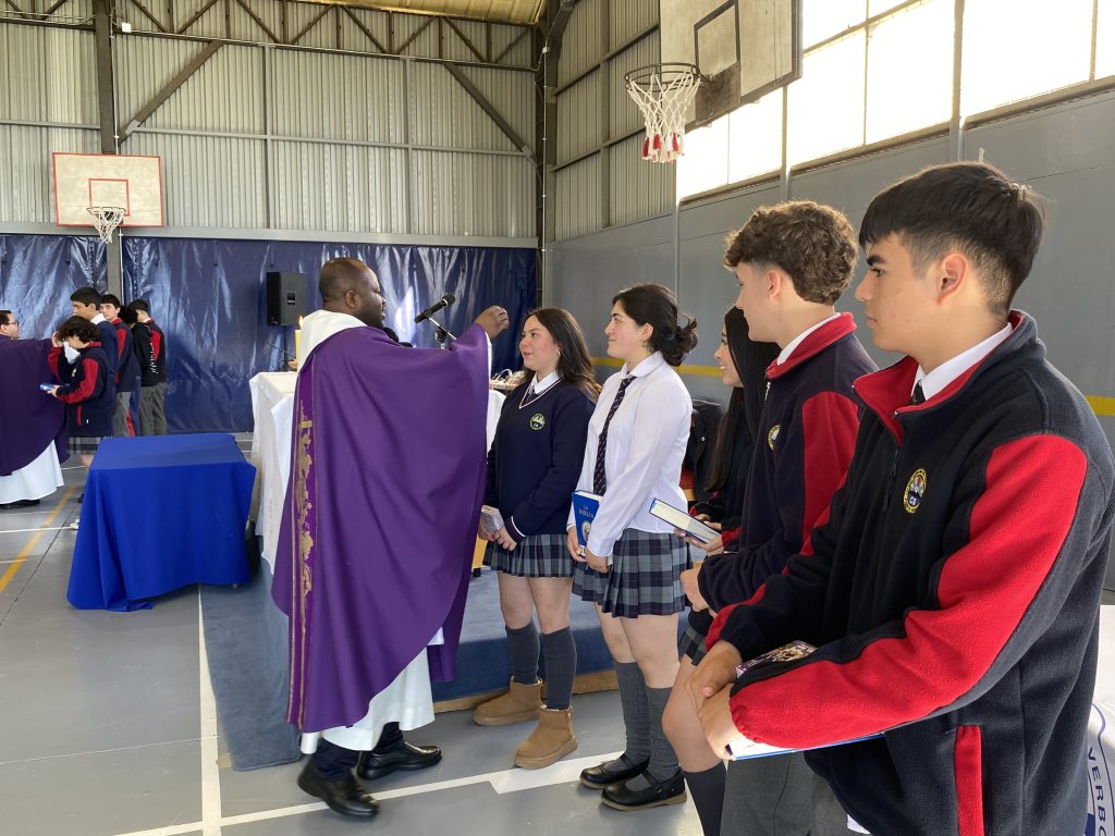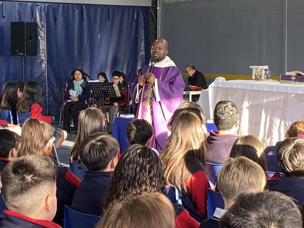 La Santa Misa fue presidida por los sacerdotes P. Stephen y P. José Miguel, quienes nos invitaron a comenzar este nuevo año poniendo a Cristo en el centro de nuestra vida escolar, confiando en Él nuestros desafíos, aprendizajes y sueños.