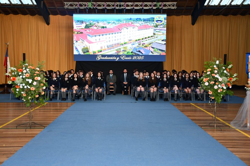 En un ambiente solemne pero a la vez emotivo y alegre, el viernes 21 de noviembre se realizó en el colegio la Ceremonia de Graduación y Envío de los Cuartos Medios 2025. Este año, 64 fueron los jóvenes que recibieron sus licencias de enseñanza media, culminando así una etapa marcada por aprendizajes, desafíos, amistades y sueños compartidos.